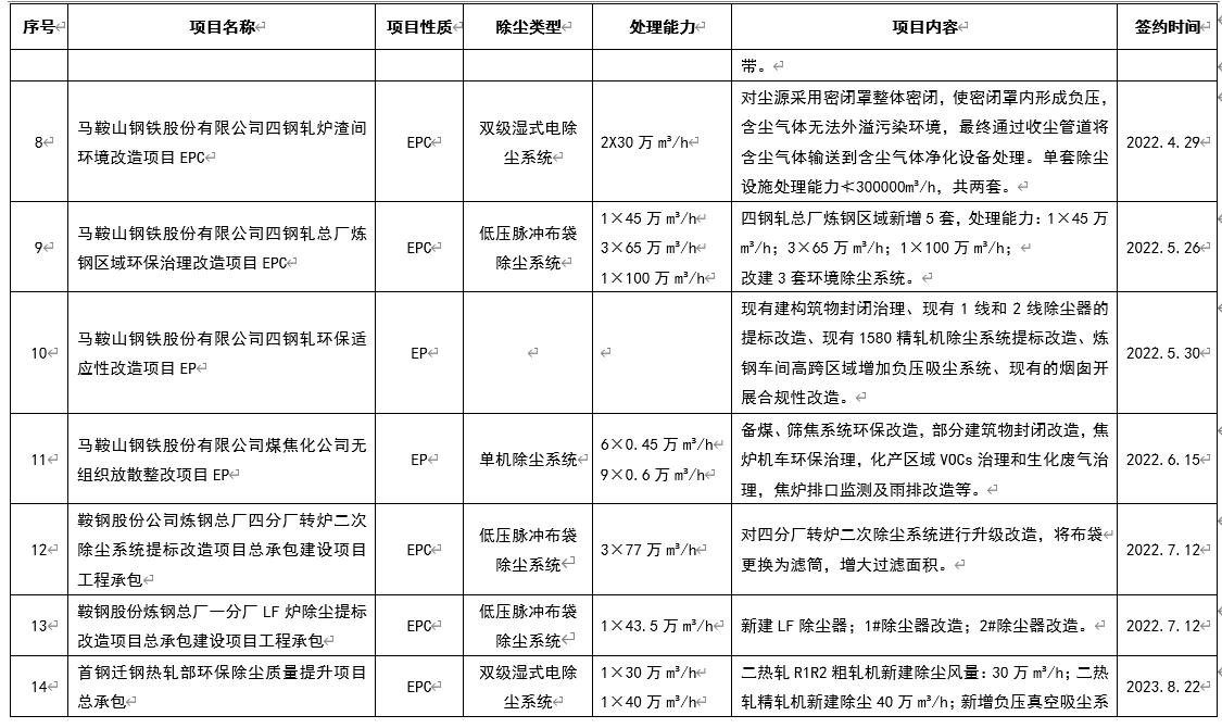 該技術特別適用于處理高塵、高濕、粘度大的煙氣,并成功應用于首鋼京唐燒結混合機除塵、馬鋼四鋼軋爐渣間環境改造、馬鋼四鋼軋總廠煉鋼區域環保治理改造等項目,可充分滿足鋼鐵企業超低排放的最新環保要求。