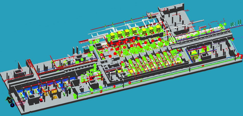 首鋼國際工程公司利用三維綜合管網設計技術,通過土建結構、設備布置、管網布置、電纜布置的多專業共平臺同步設計,實現了設計、施工的三維管理,提高了設計質量和施工效率。同時,利用自主開發的三維數字化介質系統管理平臺,可實現圖紙、元件、備件、運行數據等的全計算機網絡的生產管理、監測、培訓;并為未來建立專家故障預警、報警系統提供基礎數據。